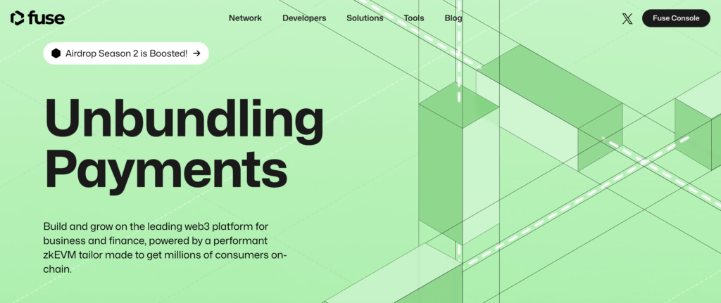 - 2023: Fuse continuó ampliando su alcance al integrar nuevas tecnologías y mejorar su infraestructura para soportar un mayor volumen de transacciones. La plataforma también ha trabajado en la mejora de la experiencia del usuario y en la reducción de las barreras de entrada para desarrolladores y usuarios finales.